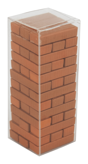 • This classic miniature Jenga game is less than 2.5 inches tall and includes 39 mini blocks. All pieces fit inside the pocket-sized case, making for easy storage and take everywhere fun!