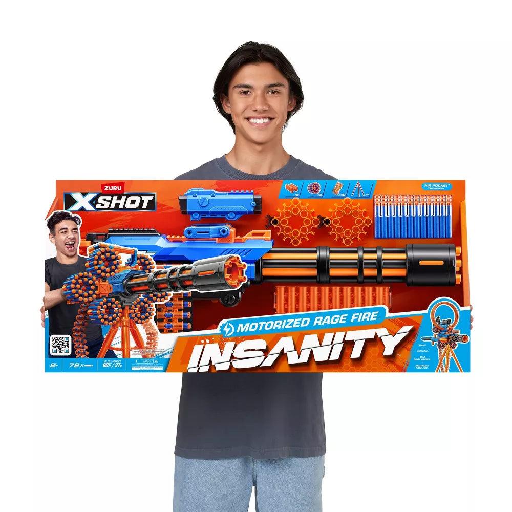 • Insane Blaster: Have your mind blown by the X-Shot Insanity Motorized Rage Fire Blaster. Combine the Rage Fire with other Insanity Blasters to create the most EPIC blaster you have ever seen!