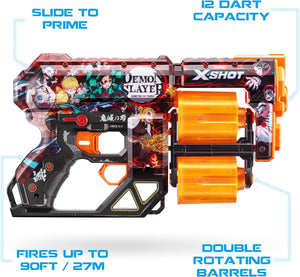• Dart Capacity: The XSHOT Skins Dread has a 12-dart capacity dual rotating barrels. When you run out of darts in one barrel, simply switch over to the second one to blast the competition away!