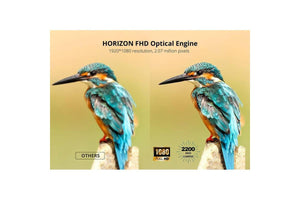 HORIZON’s super bright projection technology outshines the competition; that means no more bother choosing a different room or screen angle during daytime or in bright environments. HORIZON is the brightest projector in its class by nearly 30%, putting out a stellar 2200 ANSI Lumens. HORIZON will consistently deliver high colors and super sharp images, even in bright environments.