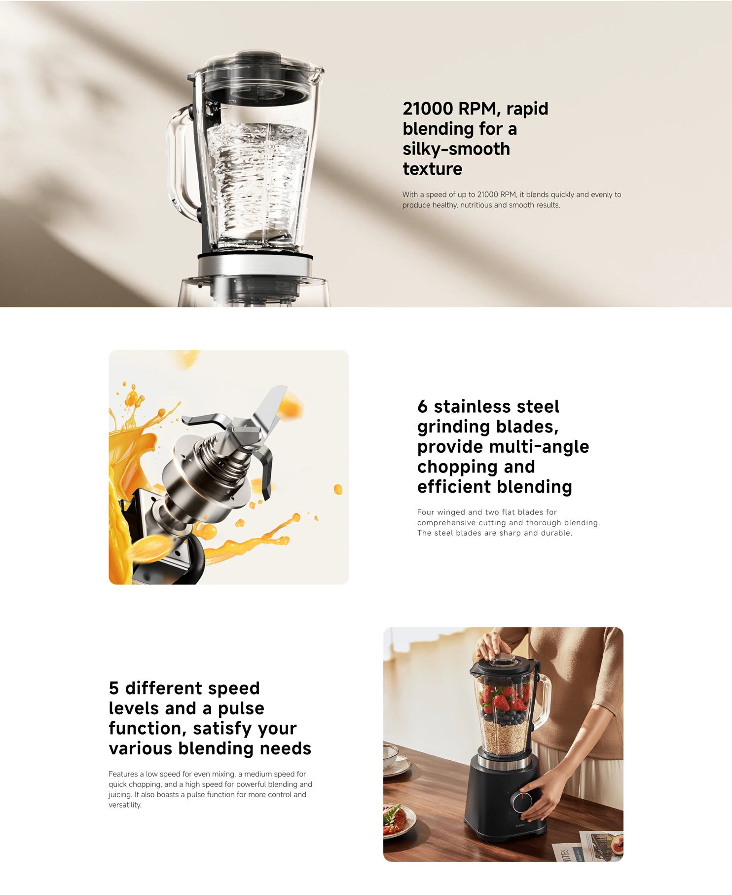 Powerful 600W Motor: High-performance motor with a speed of up to 21,000 RPM, effortlessly blending and grinding tough ingredients.