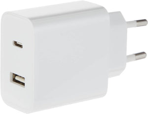 Equipped with one USB Type-A and one USB Type-C port, this charger allows you to power two devices simultaneously. The maximum combined output is 33W, ideal for fast and efficient charging. -