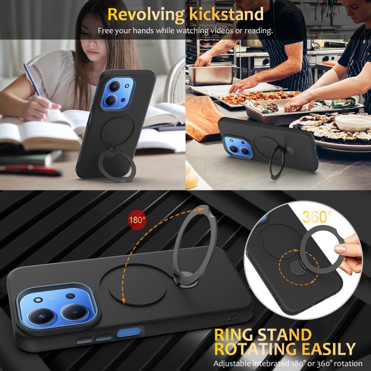 Xiaomi Redmi 15C 5G/4G EU MagSafe Compatible TPU Hybrid PC Phone Case Cover with Pivot Ring Holder - Black