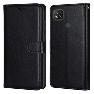 Xiaomi Redmi 9C Pure Color Horizontal Flip PU Leather Case Cover with Holder & Card Slots & Wallet & Photo Frame (Black)