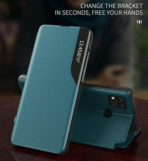 Xiaomi Redmi 9C Side Display Magnetic Shockproof Horizontal Flip Leather Case with Holder (Red)