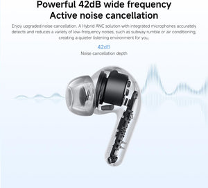 - Up to 42dB wide frequency active noise cancellation:Enjoy upgraded noise cancellation. A Hybrid ANC solution with integrated microphones accurately detects and reduces a variety of low-frequency noises, such as subway rumble or air conditioning, creating a quieter listening environment for you.