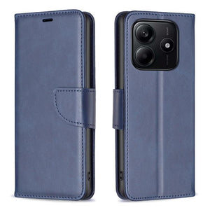 Xiaomi Redmi Note 14 4G Lambskin Texture Pure Color Flip Leather Phone Case Cover (Blue)