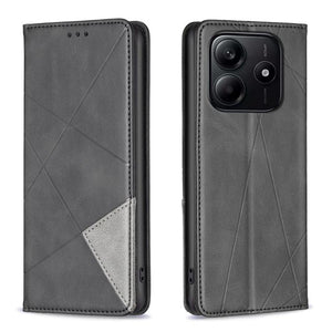 Xiaomi Redmi Note 14 4G Rhombus Texture Magnetic Leather Phone Case Cover (Black)