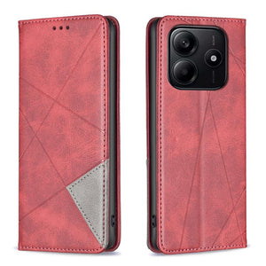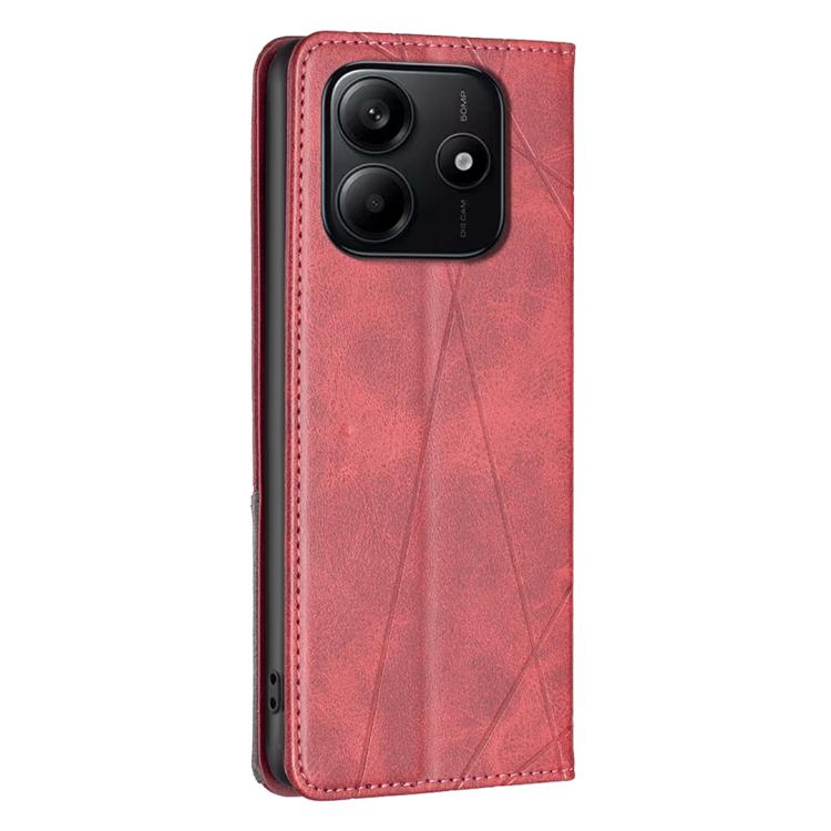 Xiaomi Redmi Note 14 4G Rhombus Texture Magnetic Leather Phone Case Cover (Red)