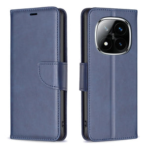 Xiaomi Redmi Note 14 Pro 5G / Note 14 Pro+ 5G Lambskin Texture Pure Color Flip Leather Phone Case Cover (Blue)