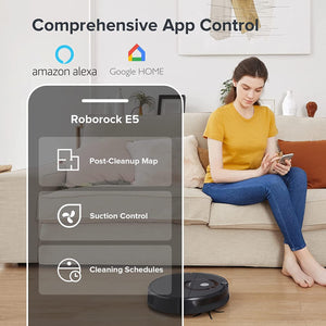 - 【Say Goodbye to Stains and Messes】 With 2500PA HyperForce suction, Roborock E5 Mop easily lifts dust and hair from floors and pulls it from deep inside carpets, and Carpet Boost ensures every carpet gets max power.