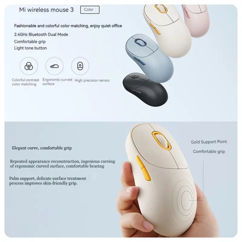 Xiaomi Wireless Mouse 3 Blue, Stylish, colourful, quiet and perfect for the office. Dual 2.4GHz and Bluetooth modes, comfortable grip and silent clicking