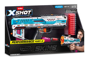 Pack Inclusions: 1x XSHOT SKINS Pro Series Fury-X Blaster 40x XSHOT Pro Series Half-Length Air pocket Technology Foam Darts