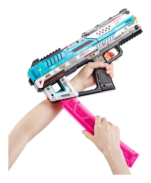 Take your dart blasting to the NEXT LEVEL with the XSHOT SKINS Pro Series Fury-X Blaster. The Fury-X is designed to achieve accuracy and distance in every blast. Equipped with a quick release 20 half dart capacity clip, you're blaster battles have just gone pro! Includes 40 XSHOT Air Pocket Technology half darts for a further, faster and more stable flight. Featuring Slam Fire Action to blast through the 20 dart clip in seconds and take out targets up to 43m / 140 feet away! Go NEXT LEVEL with XSHOT Pro Series.
