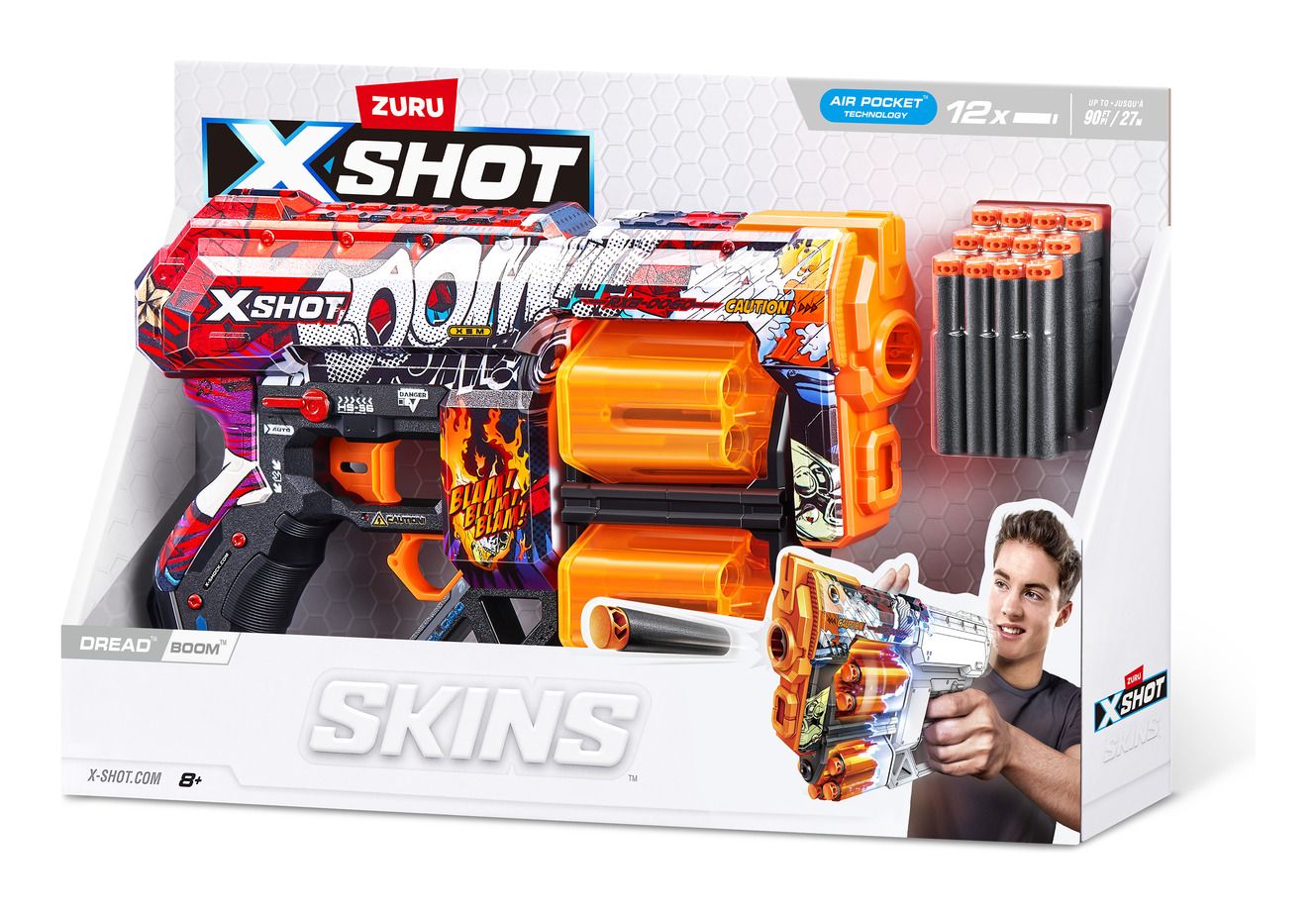 • Pack Inclusions: 1x XSHOT Skins Dread Blaster 12x Air Pocket Technology Foam Darts