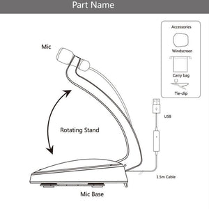 Yanmai SF-911 Professional Condenser Sound Recording 3.5mm Jack Microphone with Base Holder, Cable Length: 1.5m, Compatible with PC and Mac for Live Broadcast Show, KTV, etc. (White)