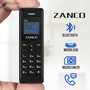 Zanco Tiny Mini Phone Bluetooth Micro SIM Calls SMS Black